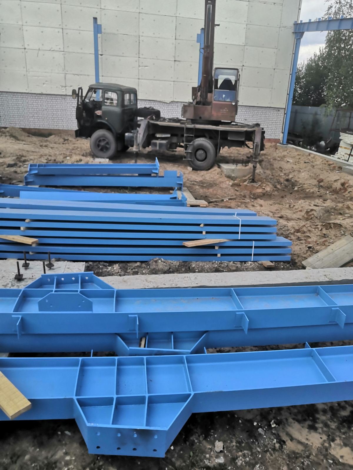 Новый объект, на котором производились работы специалистами монтажниками компании Спецпоставка. Это монтаж металлоконструкций и обшивка сэндвич-панелями производственного здания. Сооружение является пристройкой к существующему зданию и имеет независимый ленточный железобетонный фундамент.