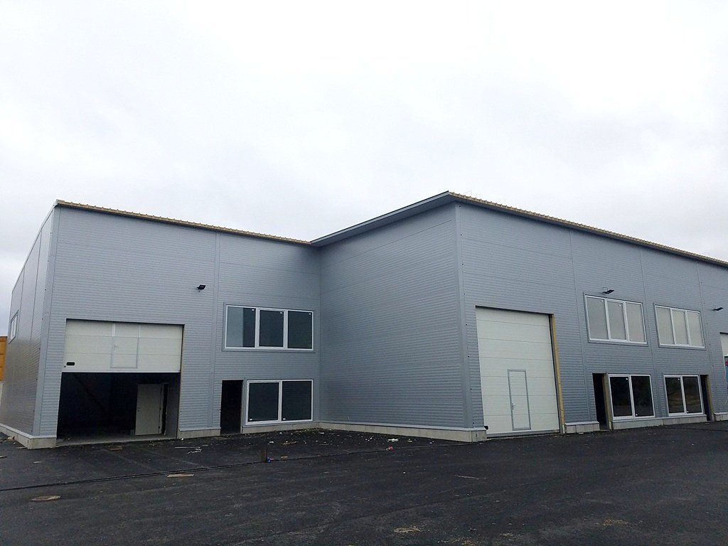 Классический пример производственного здания с гаражами и офисными помещениями. Объект полностью построен из сэндвич-панелей. Герметичная и надежная конструкция защищает от осадков, ветра и отрицательных температур.